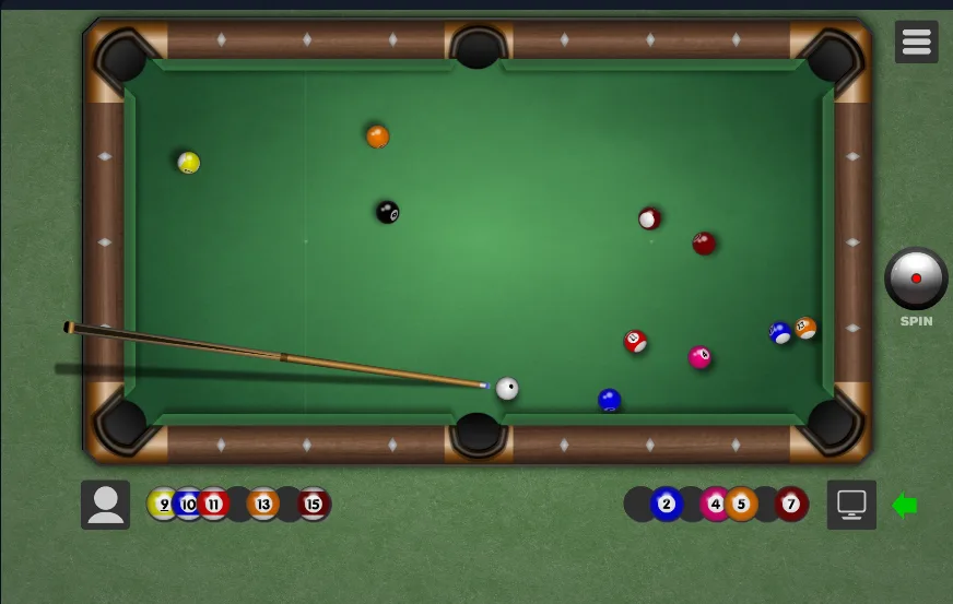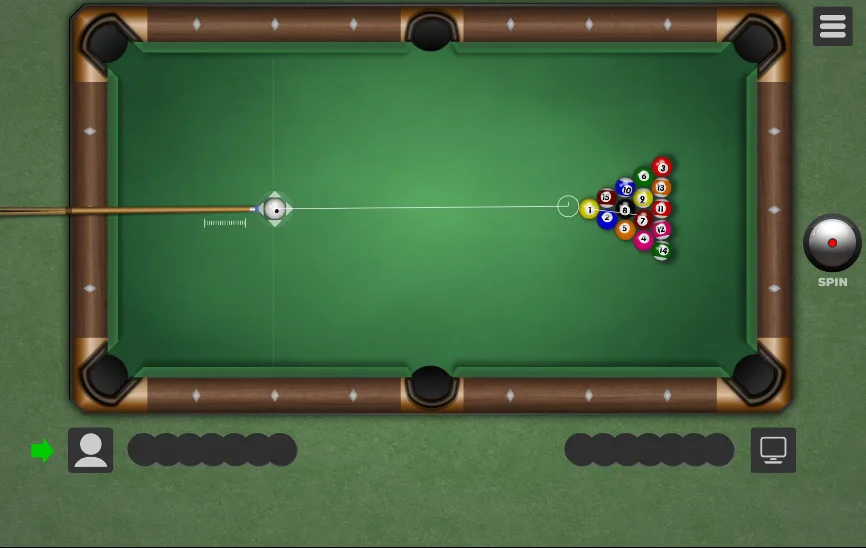 A major skill in 8 Ball Pool is mastering spin. Spin lets you influence what the cue ball does after impact. You can make it roll forward, stop on the spot, or reverse direction. To apply spin, click the cue ball icon at the top of the interface and drag the dot to where you want the effect. For instance, dragging the dot downward adds backspin. Take your shot and watch how the cue ball behaves — it’s a powerful way to set up your next play.