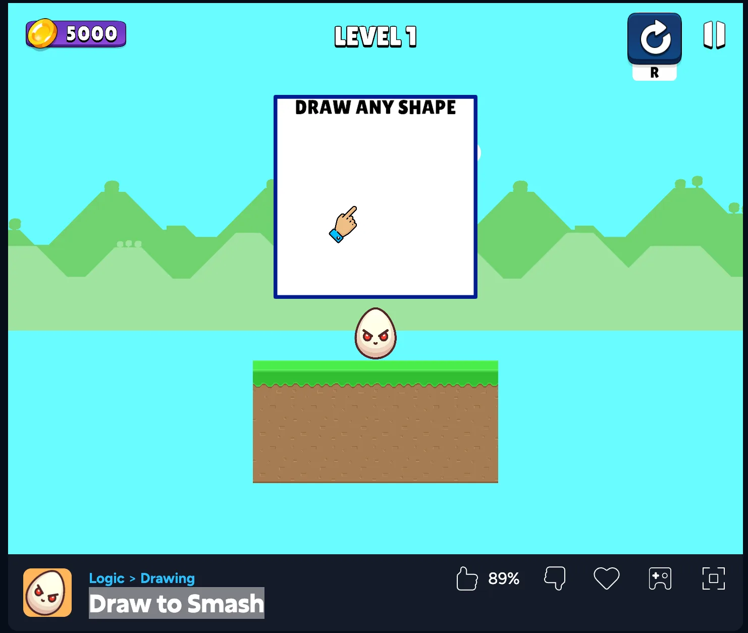 Draw To Smash is a clever physics-based puzzle game created by Hypercell. In this game, your task is to sketch lines, shapes, or doodles that will help you crush all the “bad eggs.” It puts your logic, planning, and prediction abilities to the test with every level.