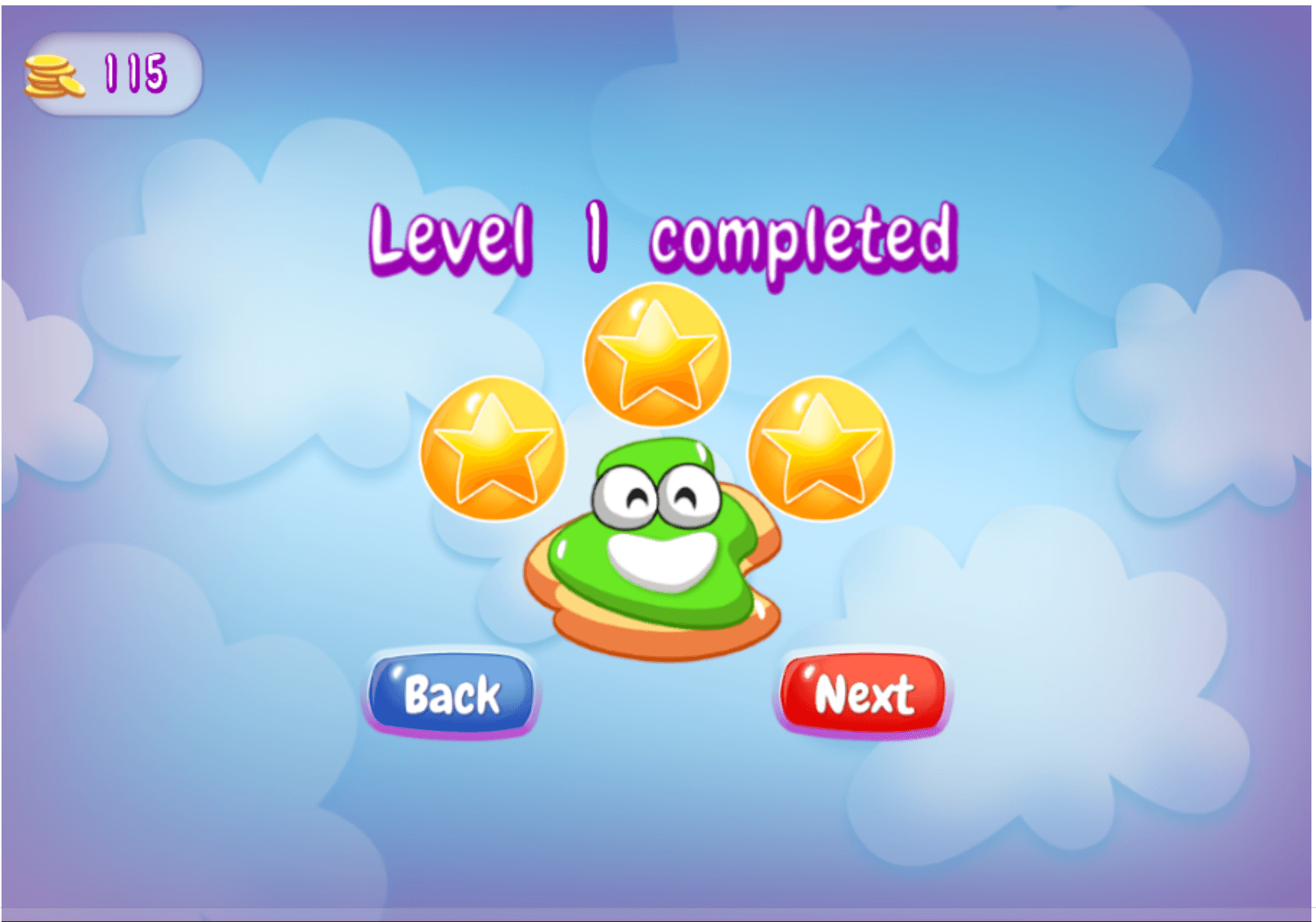 •Each level starts with a large jelly shape containing several stars.